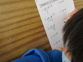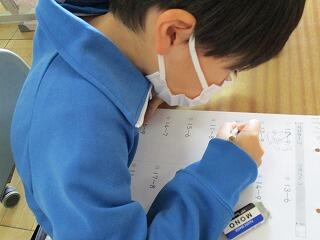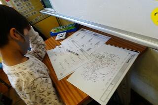 早くとき終わった子は斑の子に教えました。いろいろな問題にチャレンジして、柔軟な発想が持てるようにしています。