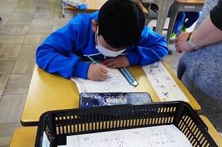 ゆりの木学級の算数の様子です。各自の課題を持って学習を進めました。