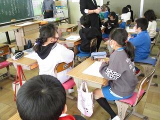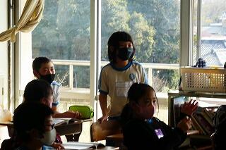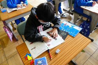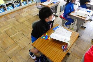 4年生はテストが終わった後の時間に「反対語」を確認しました。反対語がすぐに思い浮かばす、最初の「会う」の反対語が「会わない」になってしまう児童がほとんどでしたが、友達と話し合って一生懸命に考えました。(「会う」の反対語は「別れる」)