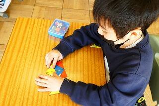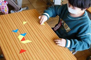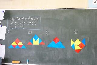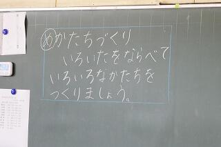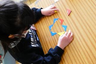 色板を使って形作りと、点と点を線でつないで形を作りました。