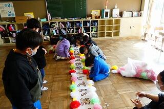 本来であれば、全校児童が体育館に集合して6年生をお祝いするのですが、今年度は感染症対策のためにそれができません。