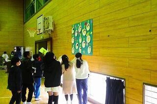 体育館には、6年生の感謝の気持ちが詰まった各学年の手作りの掲示物があり、6年生は入場するなり、じっくりと掲示物を眺めていました。