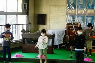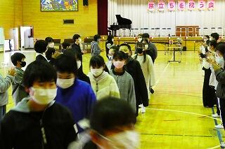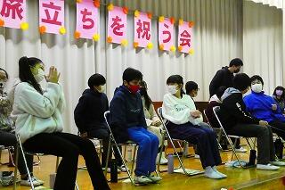いよいよ「旅立ちを祝う会」当日になりました。3月に入りましたが朝は少し肌寒く、体育館ではストーブをたいて暖めました。