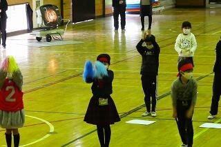次に、1年生の発表です。1年生は、「ピクトグラムクイズ」の発表でした。体全体を使って、学習の様子や部活動などの生活の様子、最後に「そつぎょう」という文字を人文字で表現しました。