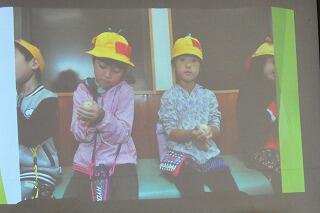 トップバッターは、ゆりの木による発表です。事前に音楽室で撮った演奏を披露しました。「きらきら星」と「かえるの合唱」の合奏をすてきな音色で披露していました。