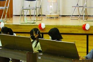 6年生は体育館で、それ以外の学年は発表するときのみ体育館に移動するという形をとりました。