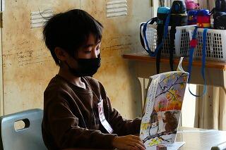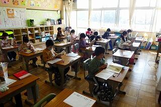 1年生は国語の学習で「お手がみ」というおはなしについて学習しています。写真はみんなで物語の場面を読んでいる所です。