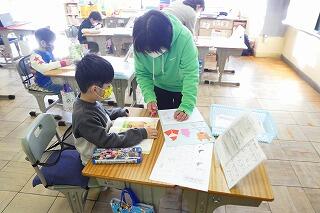 1年生は幼稚園・保育園との交流会の準備をしていました。