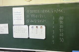 問題が終わった子は、黒板に貼ってある回答を見て確認していました。
