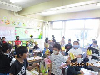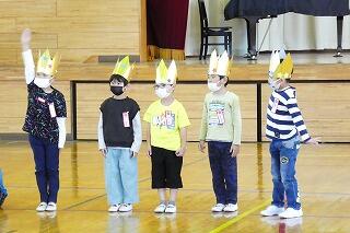 迎える会で1年生がかぶる王冠を、4年生が届けてくれました!