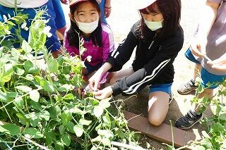 その中で、学校で育てたスナップエンドウを収穫する時間も設けました!