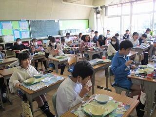 給食当番も先生たちにやり方を教わりながら配膳を頑張っていました。