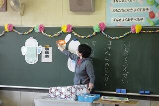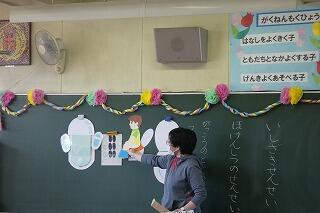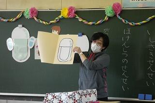 1年生では、トイレの仕方について保健の先生に教えてもらいました。