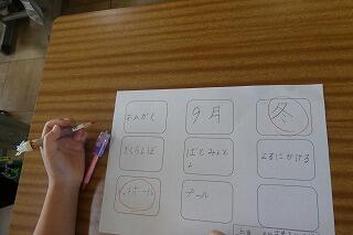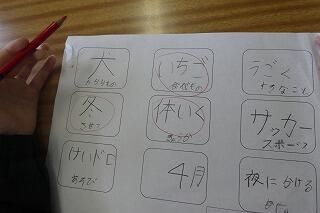 質問しながら友達と交換した自分のカードに書かれたものを推理する学習をしました。