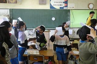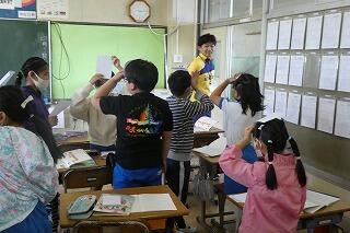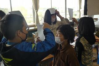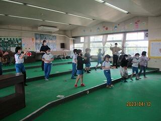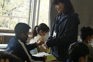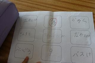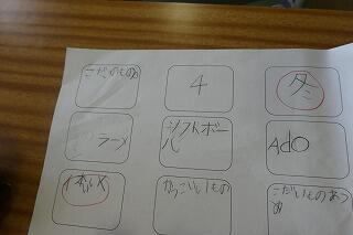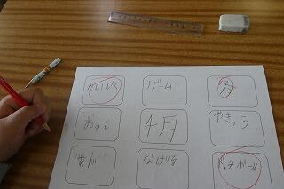 3年生は、自己紹介をしながら自分と同じものがあると丸をつけていくビンゴゲームをしました。