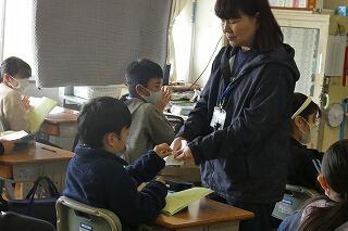 一人ひとり練習してきた成果をみんなの前で読み、シールをゲットしていました。