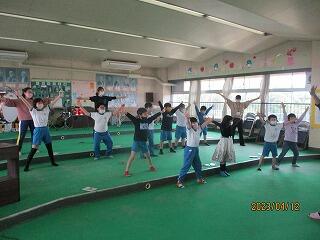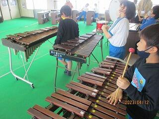 リズムに合わせて体を動かしたり、木琴を使って演奏したりしました。