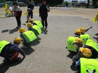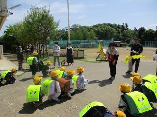 初めて集団での下校。担当の先生について行きながら、歩き方や下校コースを確認しました。