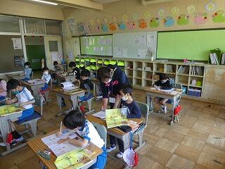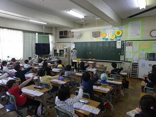 通常ならば体育館で行う「1年生を祝う会」とあわせて行う学習ですが、感染症対策のために集まることができません。
