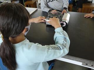 次は酸素が無い状態で燃やしてみました。木をアルミホイルで包み、火にかけます。
