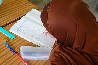 自分の進度に合わせて、時には道具を使ったり、先生に教えてもらったりして問題を解き進めました。