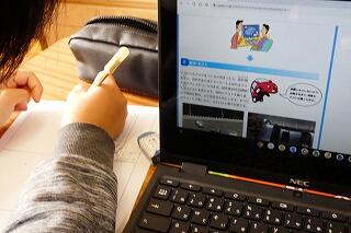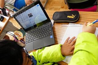 クロームブックを使ったり、副教本を使ったりと様々な方法で調べ学習を進めていました。