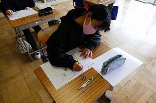 なかなか思いつかない子もいたようですが、先生にアドバイスをもらいながら進めていました。