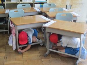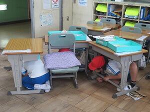 本日ワンポイント避難訓練を清掃中に行いました。先生のいない場所での一時避難は戸惑う児童もいましたが、姿勢を低く、頭を隠すという行動をとることができました