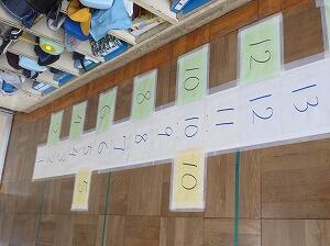 2、5の段を終了し、3の段の学習 教室の床にかけ算の帯が出現