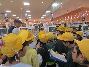 本日、3年生が社会科の学習の一環として、あさかぜ号に乗って、スーパーマーケット見学へ行ってきました。最後の質問コーナーでは、50個ぐらいの質問をしました。ジョイフーズの方が熱心に答えてくださいました。とても良い勉強となりました。