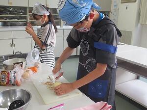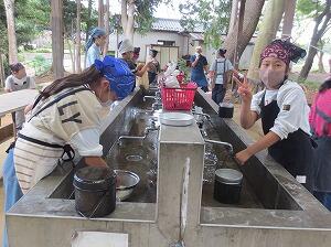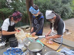 いよいよ飯ごう炊飯・カレー作り 炊事場 まずは材料の準備