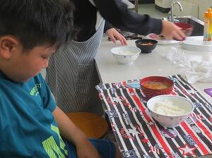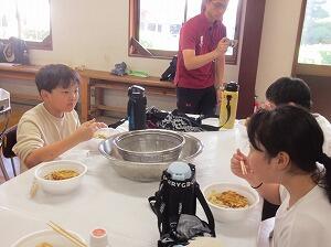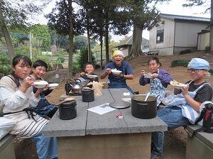 火加減も気にしながら 完成 「いただきまーす」 いい笑顔です