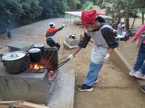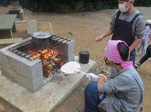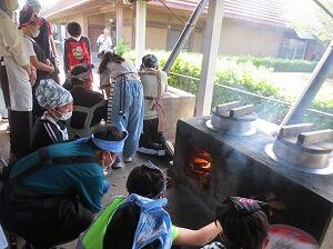 かまどの火付けはみんな上手でした 初めての児童ばかりなのに素晴らしい!