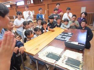 専用の包丁で1本ずつ切ります みんな上手です すばらしい出来具合