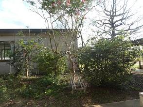職員玄関前の樹木の剪定は12月頃の予定です。