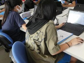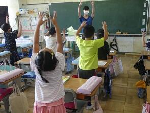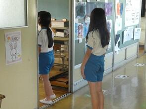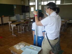今日は朝から晴天でした。湿度が低いためWBGTは27前後でした。今日は、発育測定1日目でした(4年~6年)。密に気をつけながら身長と体重を測定しました。学習では家庭科や音楽など普段紹介できない科目も紹介をします。