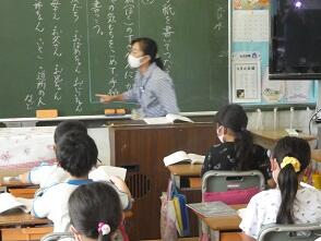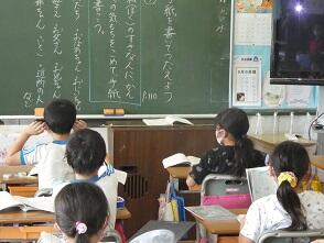 3年生は教頭先生が国語(手紙の書き方)を教えていました。誰に書く、季節の挨拶など指導していました
