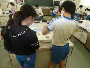5年生は家庭科で電気ミシンの使い方を学んでいました。下糸の通し方など苦戦中のようでした
