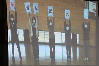 次に、職員による発表。ビデオレター形式による6年生へのエールを贈りました。