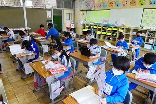 1年生は計算ドリルを進めました。速く終わった子はクロームブックで学習です。