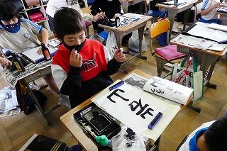 1年生は、横書きと縦書きの学習をしました。文章の書き方に気をつけながら、丁寧な字でカードを書きました。