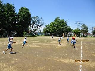 今日の体育は、ふやし鬼、かわり鬼、氷鬼など、鬼ごっこをして校庭を自由自在に走り回って楽しみました。