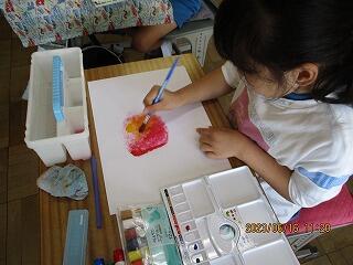 りんごの絵をいろんな色を混ぜて少しずつ色を重ねていきました。