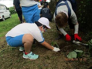 ゆりの木組では、かぼちゃの苗を地域の方と一緒に植えました。