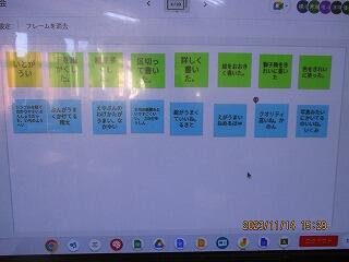 chromebookを使って、みんなのいいところを出し合い、「よさ」を共有しました。