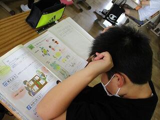 4年生の理科では、教科書を使って復習問題に取り組んでいました。