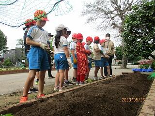 ゆりの木学級は、外に出てサツマイモの苗を植えました。