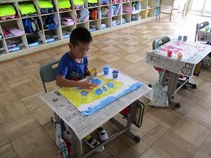 1年生は図工で「さわってまぜて気持ちいい」という単元の学習を行いました。