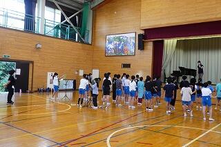5・6年生は、合同で150周年記念音楽祭に向けての練習を体育館で行いました。