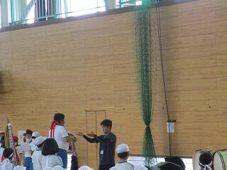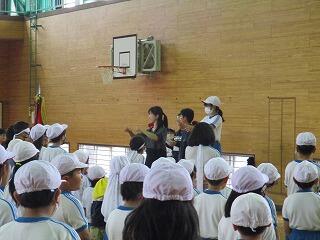3時間目は、全校で開閉会式や大玉送りの練習を体育館で行いました。